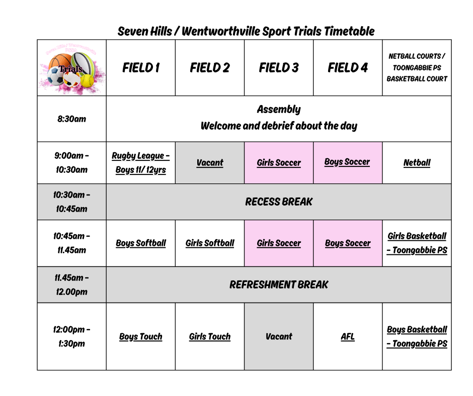 Term 1 Week 5 of 2026 is the Seven Hills / Wentworthville PSSA zone team sport trials.